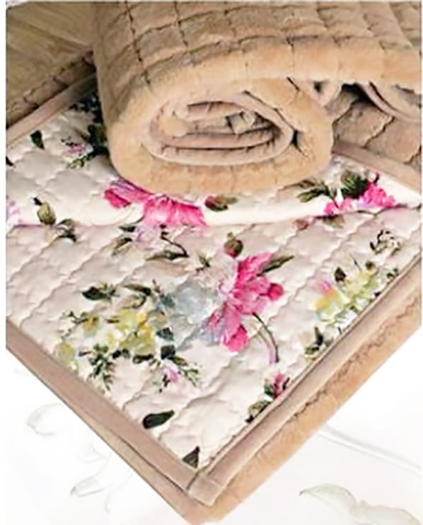 Покрывало двухсторонние на кровать или диван, верхняя сторона однотонный искусственный мех под шиншиллу, он очень приятный на ощупь, изнаночная сторона, хлопковый сатин с ярким цветочным орнаментом. Покрывало простеганное, оно не скользит и станет ярким украшением для любого интерьера.
