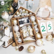 Новогодний набор елочных шаров в праздничной упаковке представлен в комплектации 71 штук, Набор шаров в коробке выполнен из пластика не бьющиеся игрушки на елку.Игрушки легкие, поэтому ёлочные веточки не будут провисать.