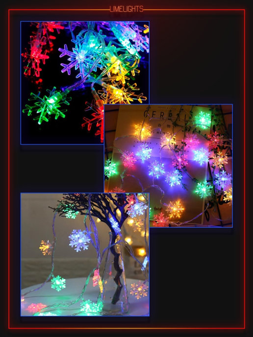 Гирлянда цветная с небьющимися лампами 6 м Снежинка
