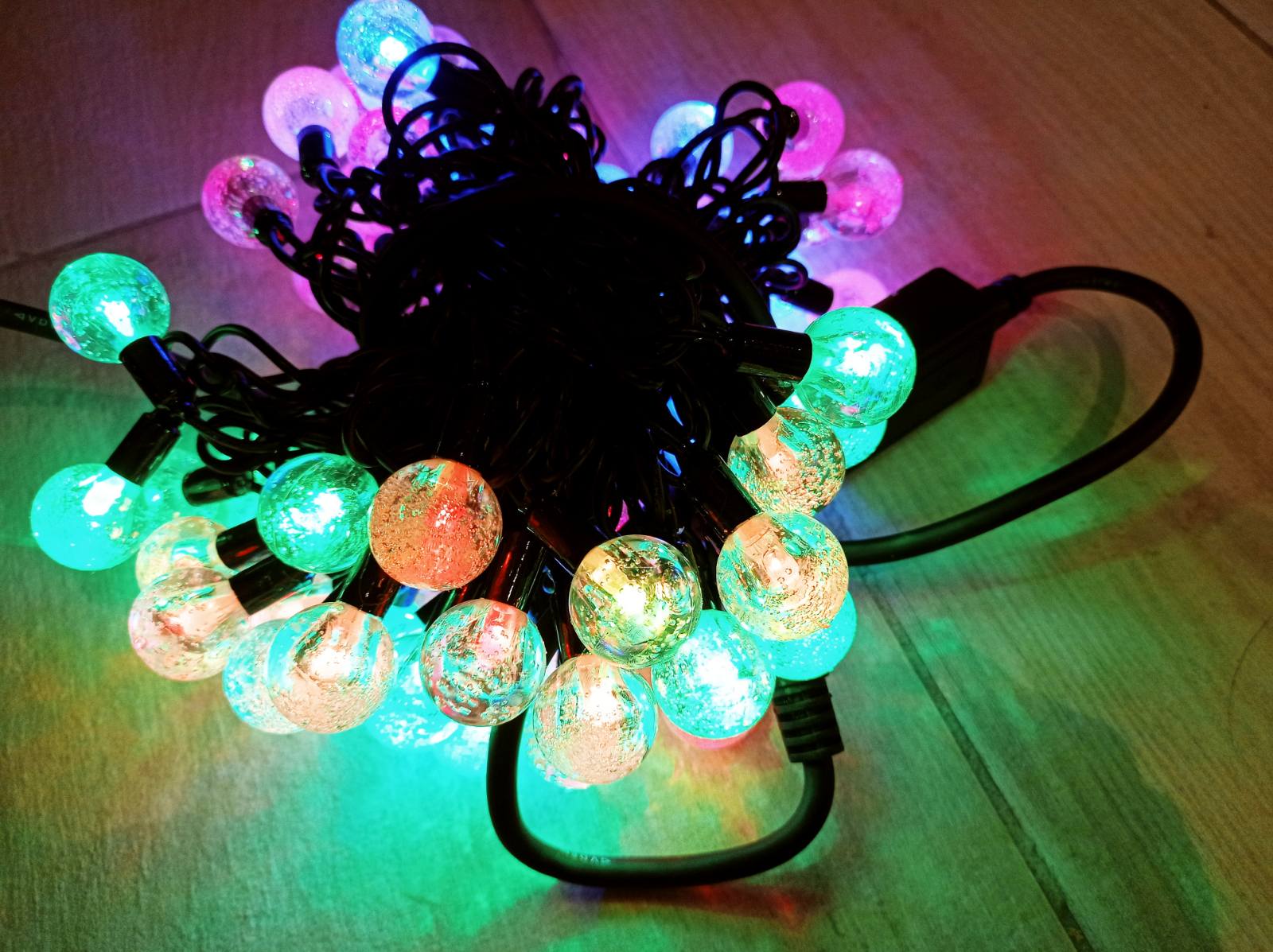 Уличная цветная светодиодная гирлянда ШАРИКИ с пузырьками работает от сети 220 В