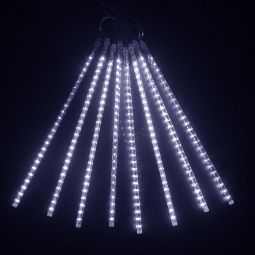 Световой эффект бегущего сверху вниз огонька полностью имитирует бегущую капельку. Выглядит это бесподобно красиво! Тающие сосульки используются при украшении высотных елок, при декорировании зданий. Тающие сосульки могут быть односторонними – для использования на елке или двухсторонними – для использования в витринах, на окнах – там где их видно с двух сторон.