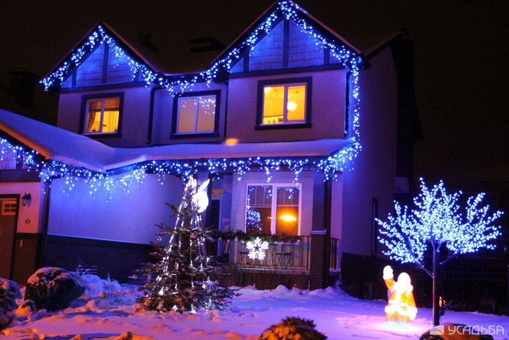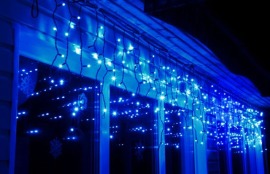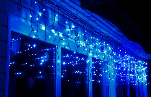 Гирлянда бахрома чаще всего используется для украшения окон фасадов и козырьков зданий.