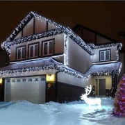 Гирлянда бахрома чаще всего используется для украшения окон фасадов и козырьков зданий.