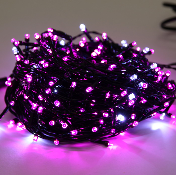 Электрогирлянда нить Бриллиантовая уличная ip44 розовая 20 м
