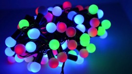 Светодиодная гирлянда "мультишарики" IP- 65. Каждый шарик имеет 7 цветов, FLASH-режим Быстрый диаметр шарика 2см, длина гирлянды 10 метров, провод каучук, можно соединять до 10 штук, шнур питания в комплект не входит, можно использовать на улице и в помещении
