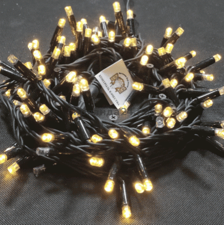 Гирлянда светодиодная мерцающая 10 м., 100 светодиодов повышенной яркости, на чёрном каучуковом проводе (3,3мм), можно использовать на улице, соединяется до 10 штук, шнур питания в комплекте.