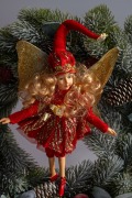 Игрушка на елку ангел фея ангел девочка с крыльями новогодняя красная с золотом 35 см