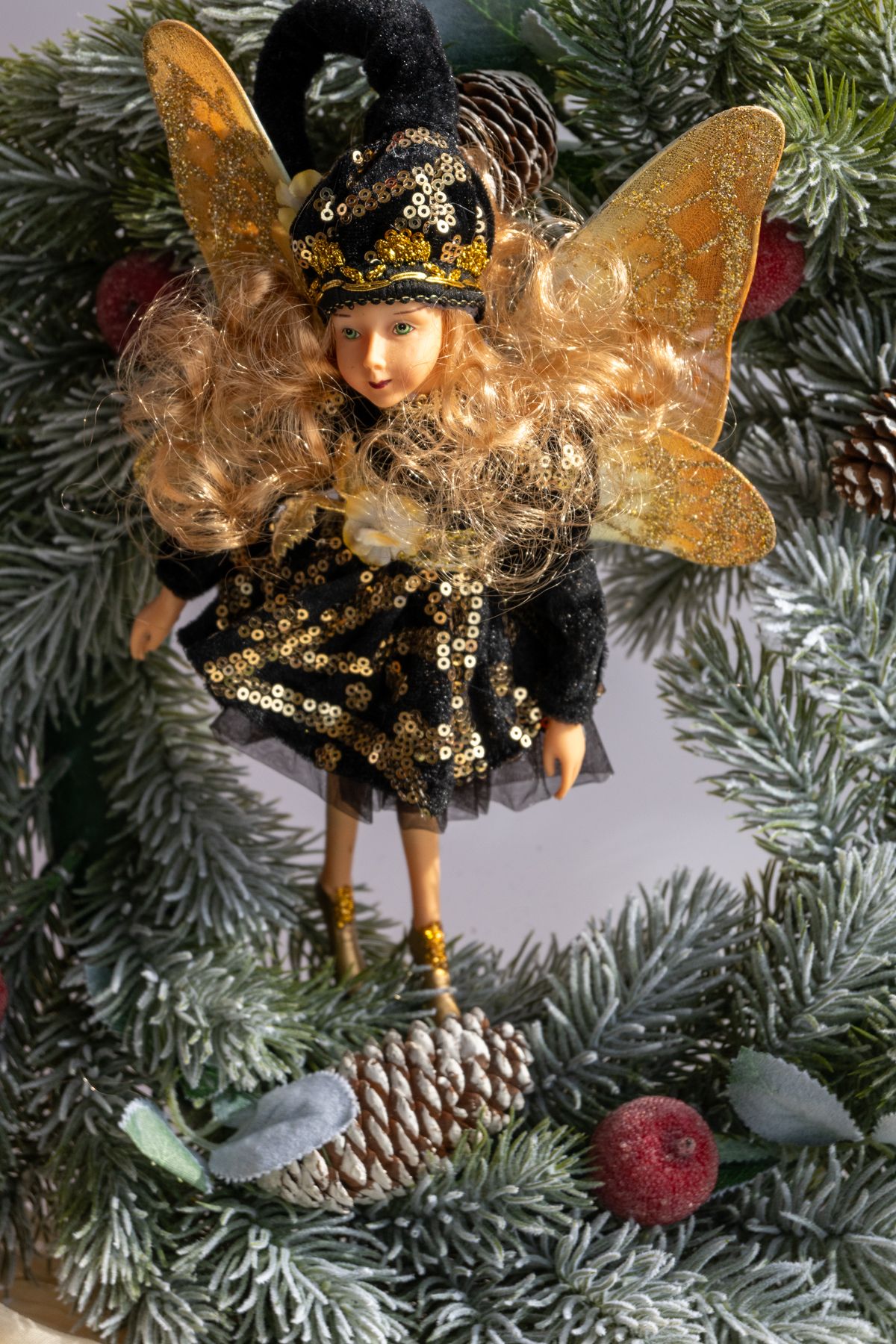 Игрушка на елку ангел фея эльф девочка с крыльями черная новогодняя