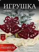 Игрушка под елку, елочная игрушка бархат красная Колокольчик фигурные 2 шт