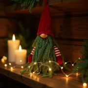 Новогоднее украшение Новогодний гномик с хвойной бородой 39 см интерьерный, зеленый, красный