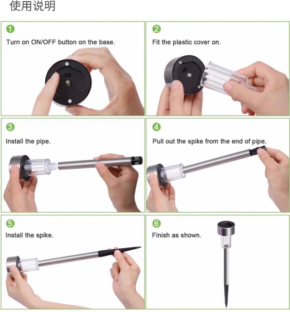 Солнечные лампы из нержавеющей стали Открытый заземляющий солнечный светильник Высокое качество из нержавеющей стали яркие белые светодиодные солнечные лампы. Принять новейшие улучшенные панели солнечных батарей, обеспечивает лучшую производительность и длительное время использования. Солнечная панель преобразует Солнечный свет в дневное время и заряжает батарею. Ночью светильник включается автоматически. Светильник в сборе, секции кола, разъемы и прочные заземляющие шипы включены. Это энергоэффективное, низкое обслуживание солнечных ламп добавить очаровательное, декоративное свечение к вашей подъездной дорожке, патио или клумбах.Выключение/включениеБезопасный и водостойкий