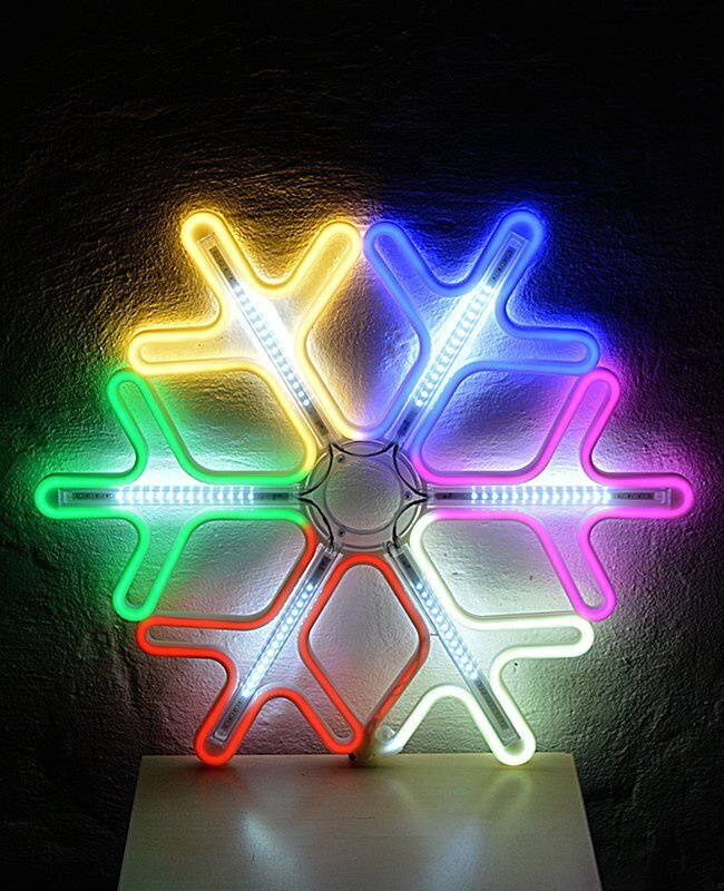 Светодиодная снежинка 60см Цветная неоновая с бегущими огнями