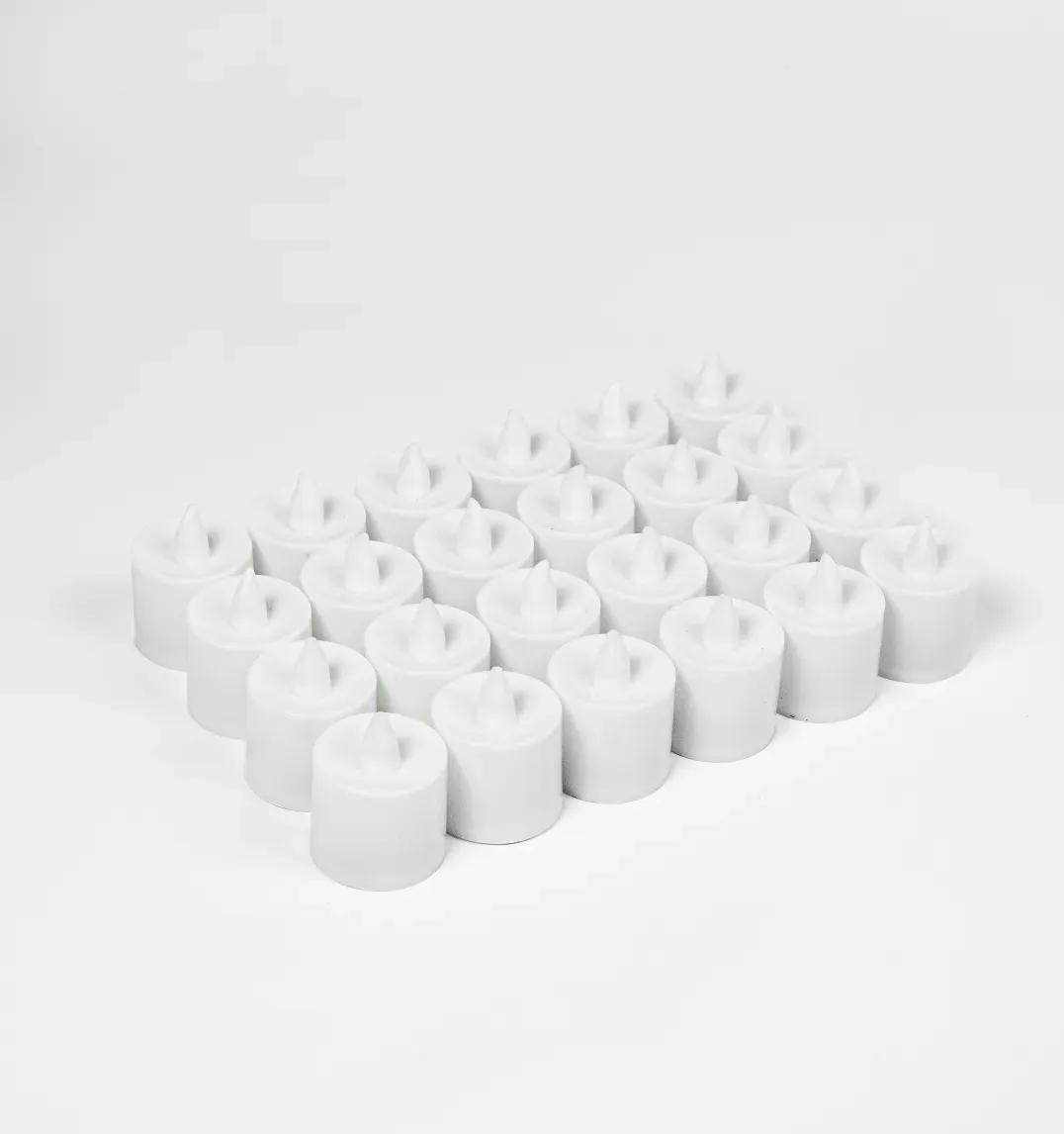 Комплект светодиодных свечей (24 шт.) белого холодного свечения, идеально подходит для декорирования помещения, создания атмосферы романтики и праздника.