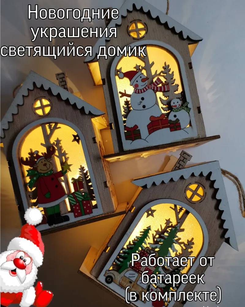 Новогодние фонари создают по-настоящему сказочную атмосферу Нового года. Композиция с Дедом Морозом, ёлкой, оленями, снеговиками. Новогодние светильники очень любят маленькие дети, они подобны пламени, на которое можно смотреть до бесконечности. Новогодний фонарь может быть не только хорошим украшением интерьера квартиры или загородного дома, но а также превосходным подарком к Новому году для друзей, родственников и коллег по работе. Работает Новогодний светильник от батареек, которые входят в комплект. Новогодний светящийся домик понравится не только детям, но и взрослым. Новогодние фонари почти не издают никакого шума, поэтому их также можно использовать в качестве ночника. Новогодниий декоративный светящийся фонарь можно поставить абсолютно в любом месте, будь то полка, журнальный столик, комод или тумбочка около кровати, под ёлкой. В любом месте рождественский фонарь украсит интерьер Вашего дома в эти прекрасные рождественские новогодние праздники. Теплый желтый свет который излучает деревянный фонарь придаст уют и волшебное настроение Вашему празднику. Отлично подойдёт для декора на новогодние фотосессии. Новогоднее освещение это часть каждого праздника. Новогодние украшения светящийся домик