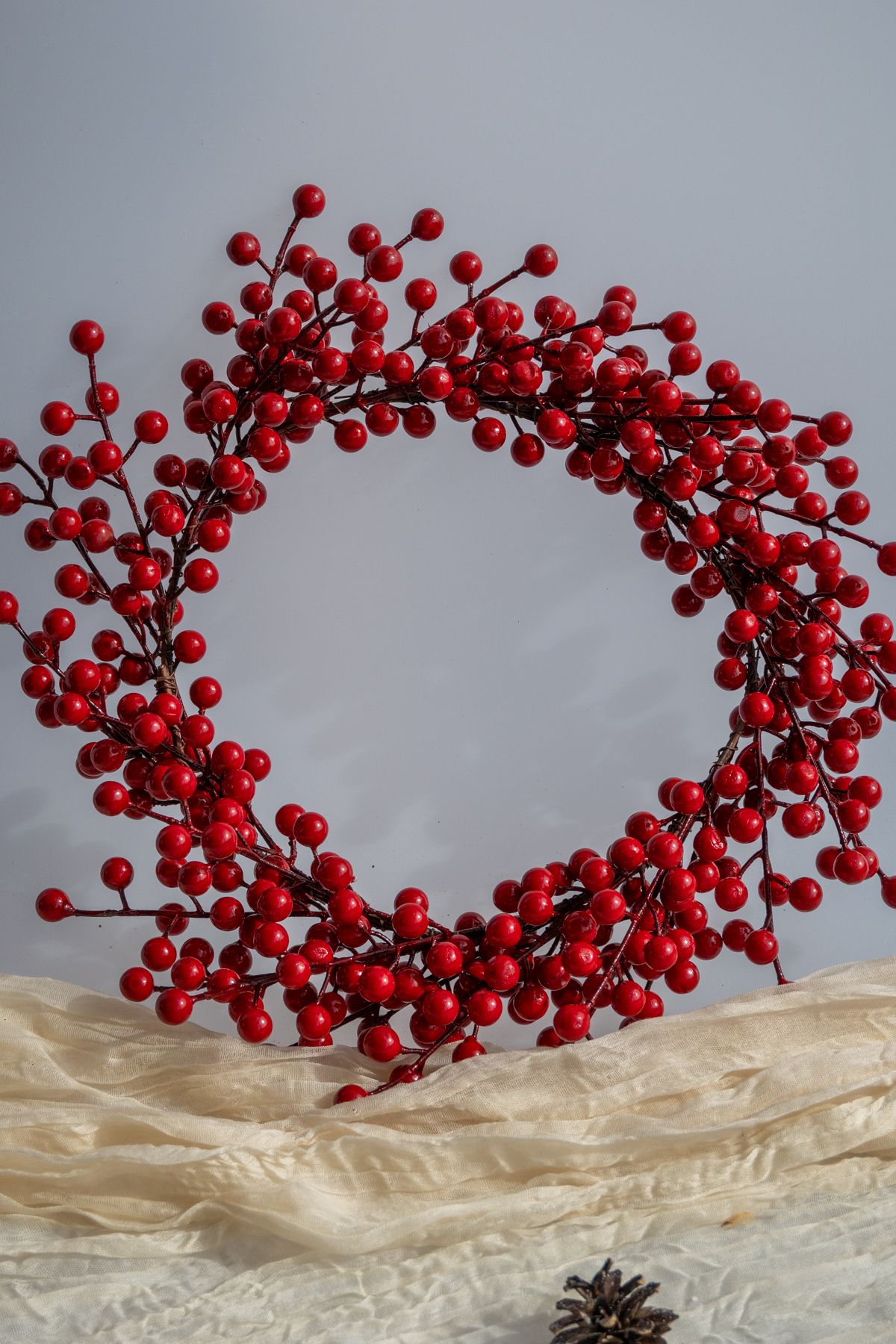 Венок новогодний на дверь из красных ягод премиум украшение новогоднее 40см